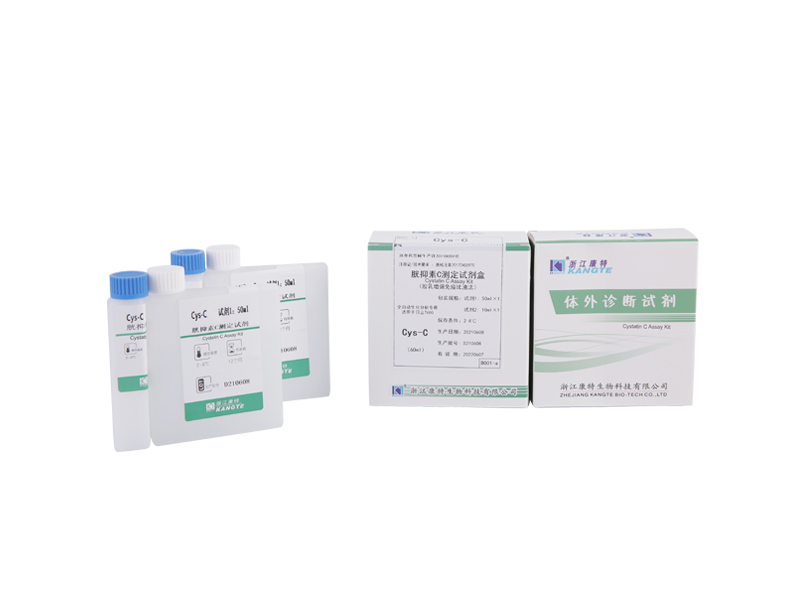 Úsáideann Kit Measúnachta Cystatin C ceapaire ELISA. Tá an trealamh seo deartha chun an méid cistitín C daonna a bhrath i sampla laistigh d'uair an chloig. Úsáideann an mheasúnacht ceapaire speisialaithe ELISA le hantasubstaint dhúbailte atá sainiúil do Cystatin C. Léiríonn an toradh go bhfuil na antasubstaintí comhchuingeach i gceart leis an bhfrith-antasubstaint frith-CYS.